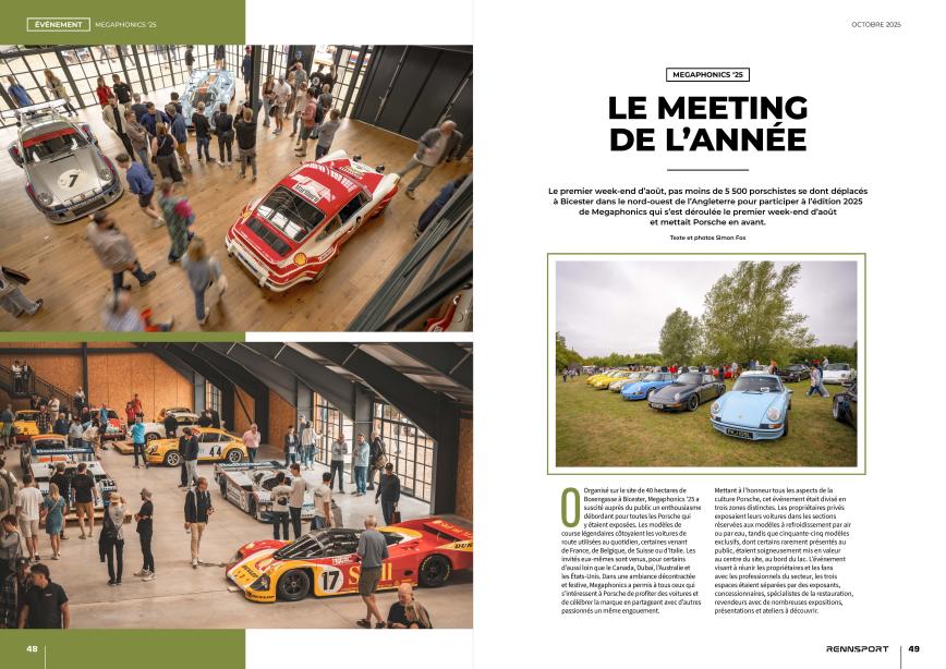 Le premier week-end d’août, pas moins de 5 500 porschistes se dont déplacés à Bicester dans le nord-ouest de l’Angleterre pour participer à l’édition 2025 de Megaphonics qui s’est déroulée le premier week-end d’août et mettait Porsche en avant.